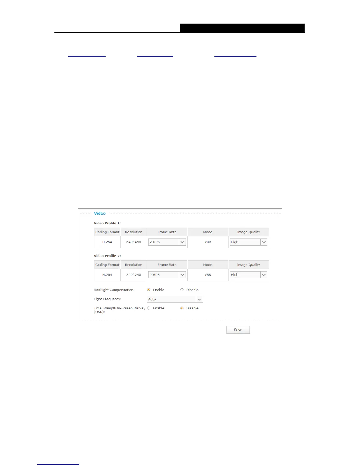 This camera provides two video profiles: Video Profile 1 for VGA (640*480) resolution