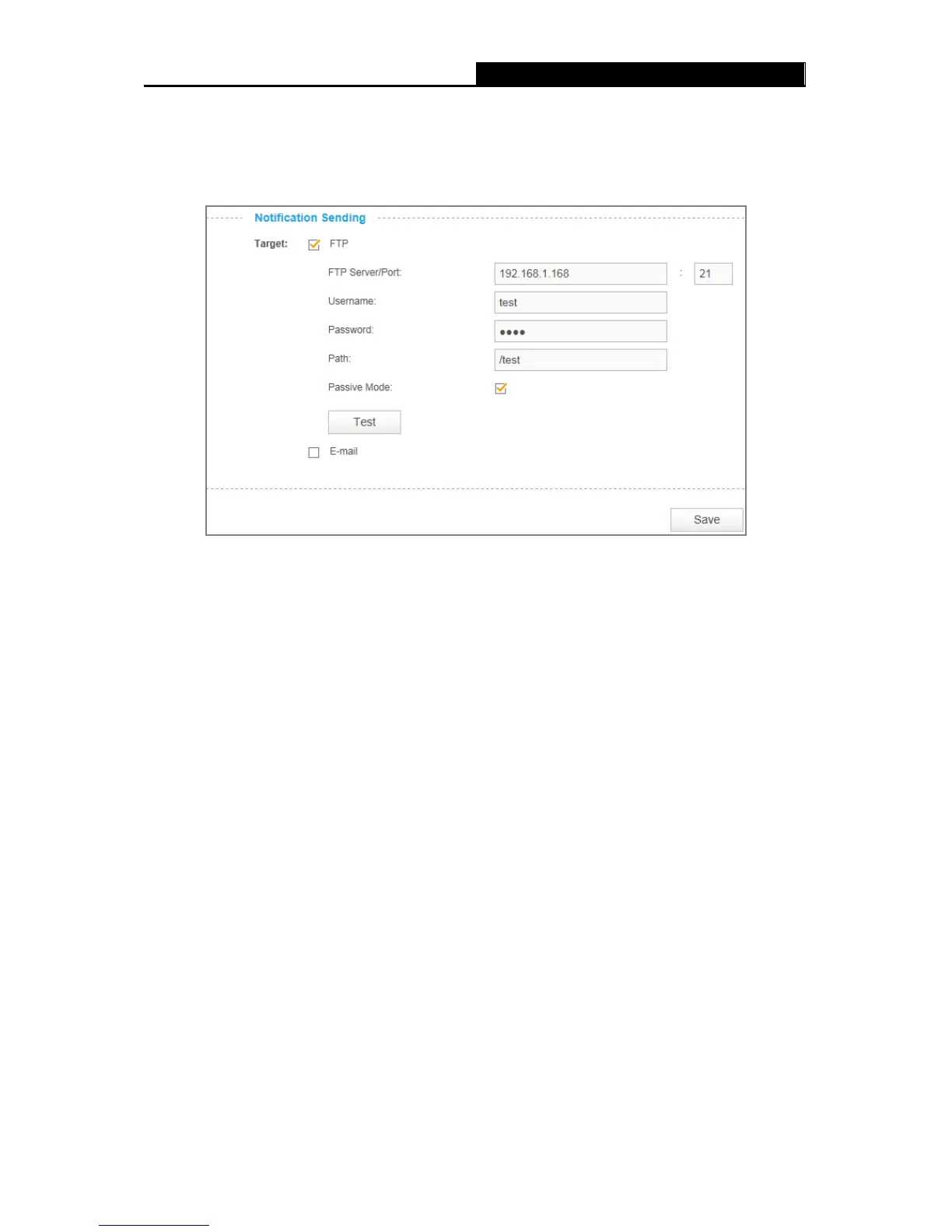Click Test, and a test JPEG snapshot will be sent to the specified FTP server to check whether