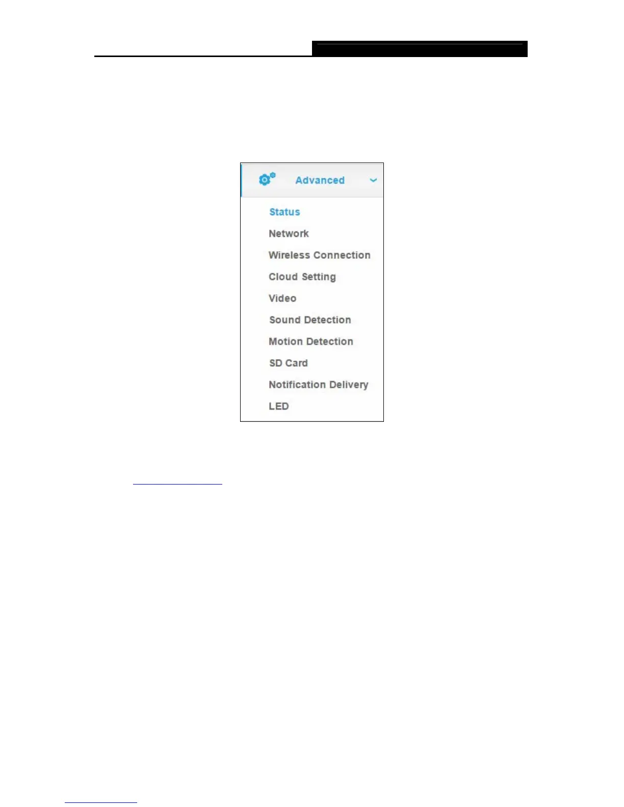 Click the Advanced menu to display the submenus including Status, Network, Wireless
