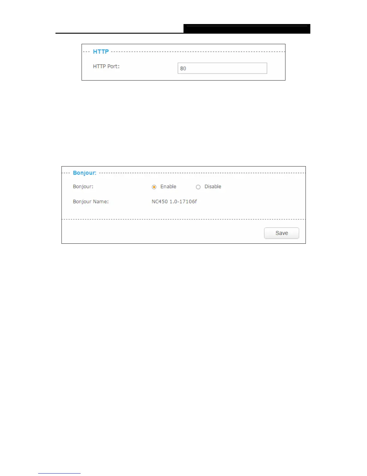 Bonjour: To enable or disable the Bonjour service.
