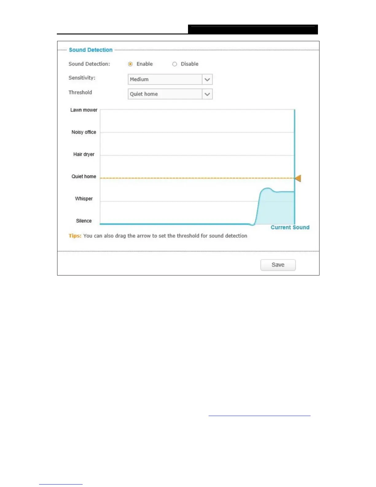 Threshold: Select the threshold of sound level. You can also drag the arrow in the diagram to