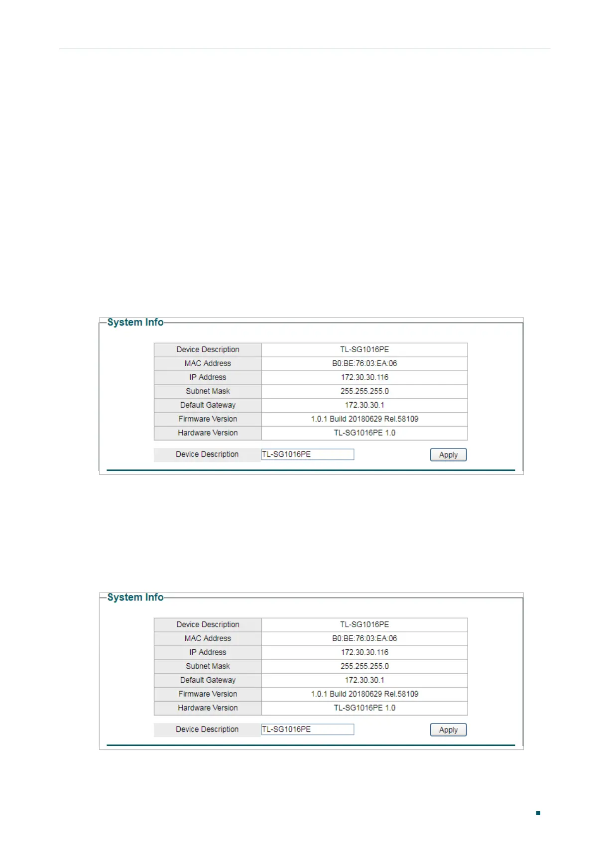 Choose the menu System > System Info to load the following page. Specify a new device
