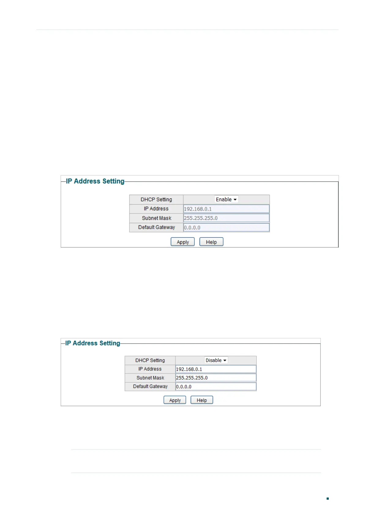 1) Select DHCP setting as Disable from the drop-down list.
