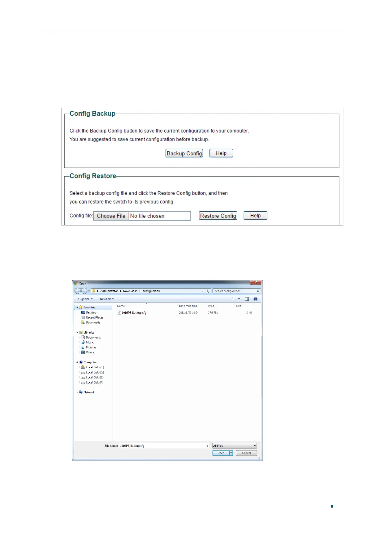 1) In the Config Restore section, click Choose File to load the following page. Specify the