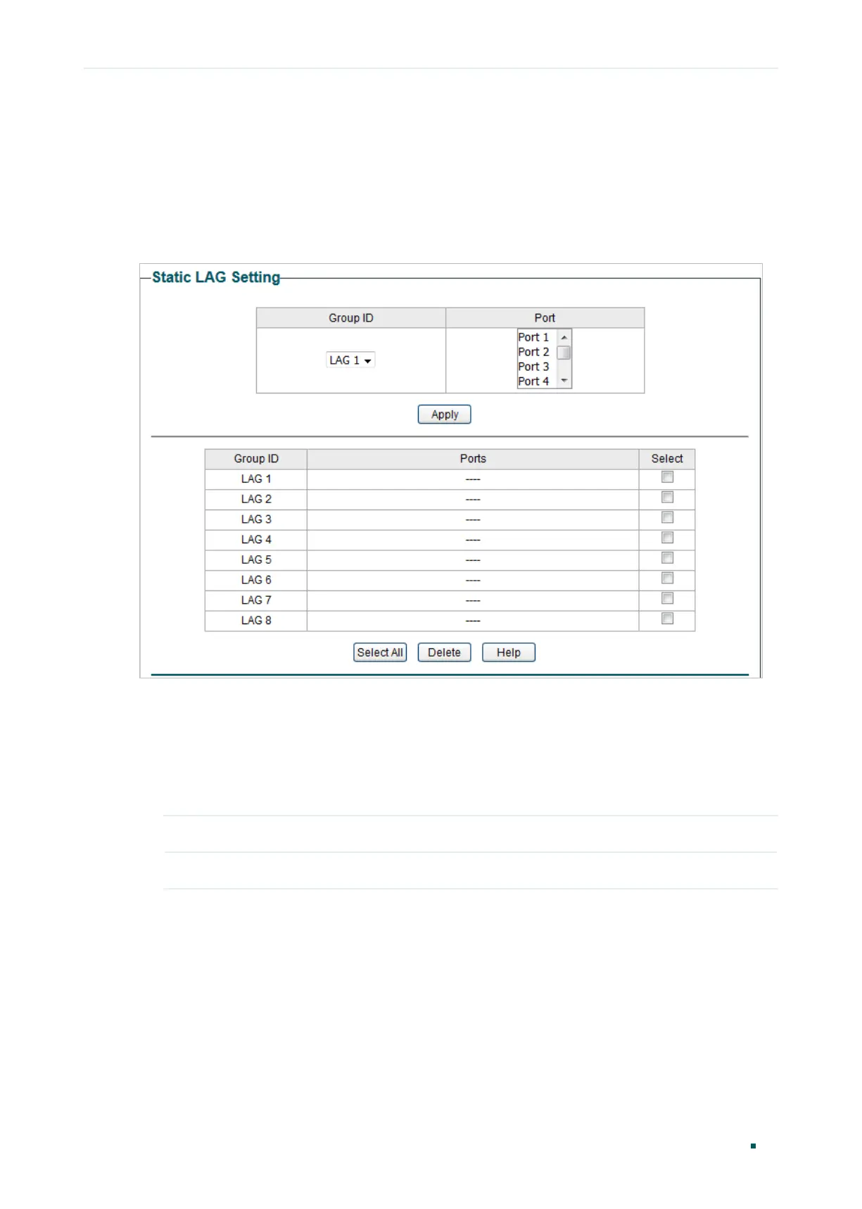 3) In the table below, you can verify the LAG configuration result. You can select the LAG