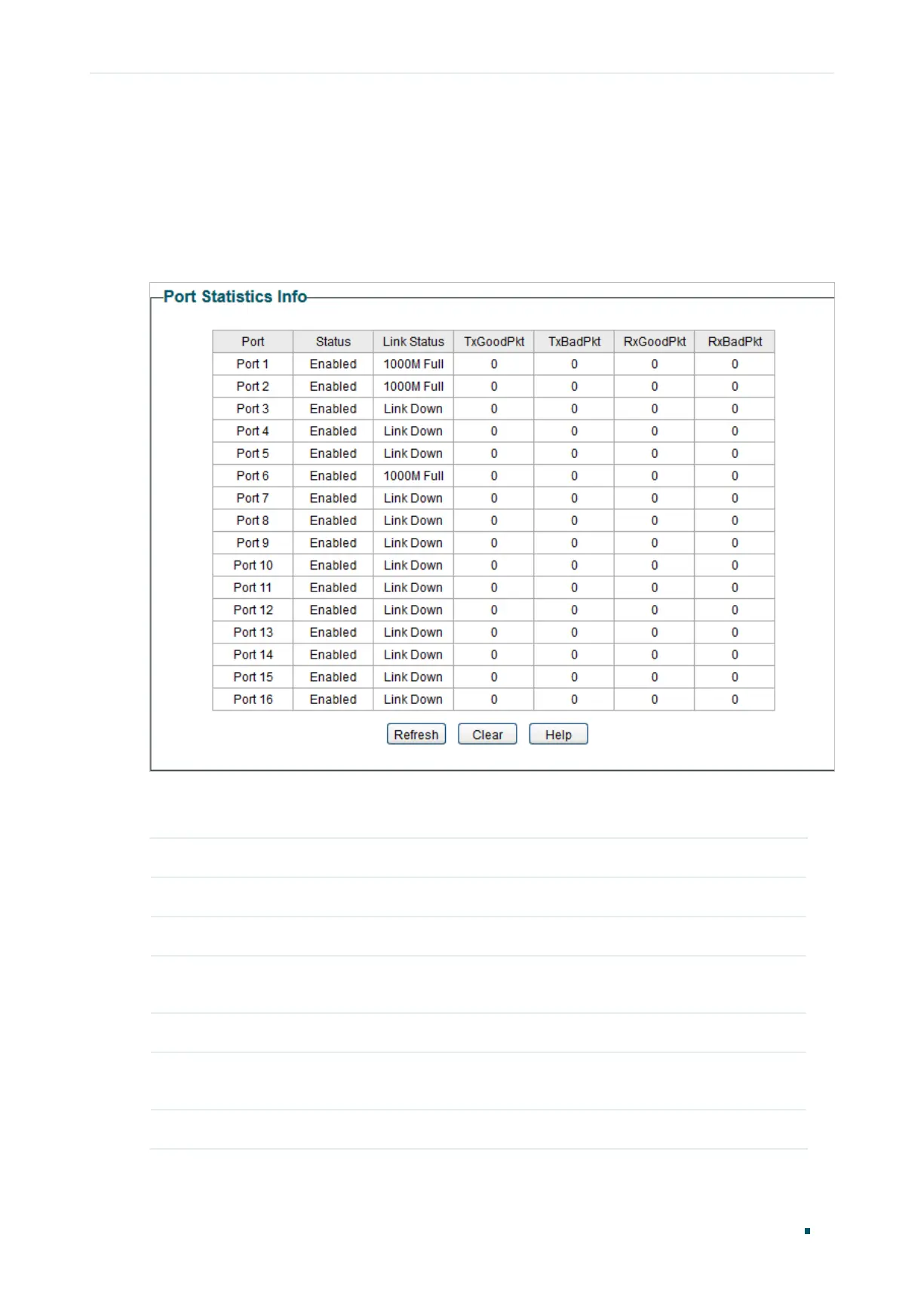 You can view the statistics of each port. You can click Clear to clear the data, also you can