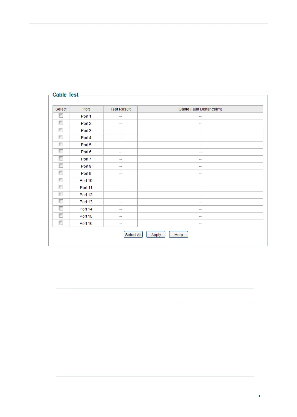 1) Select your desired ports for test. Click Apply to test cables connected to the selected