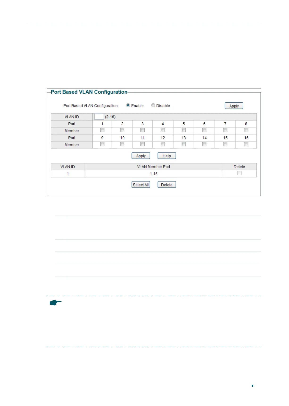1) Select the port based VLAN configuration as Enable. Click Apply.