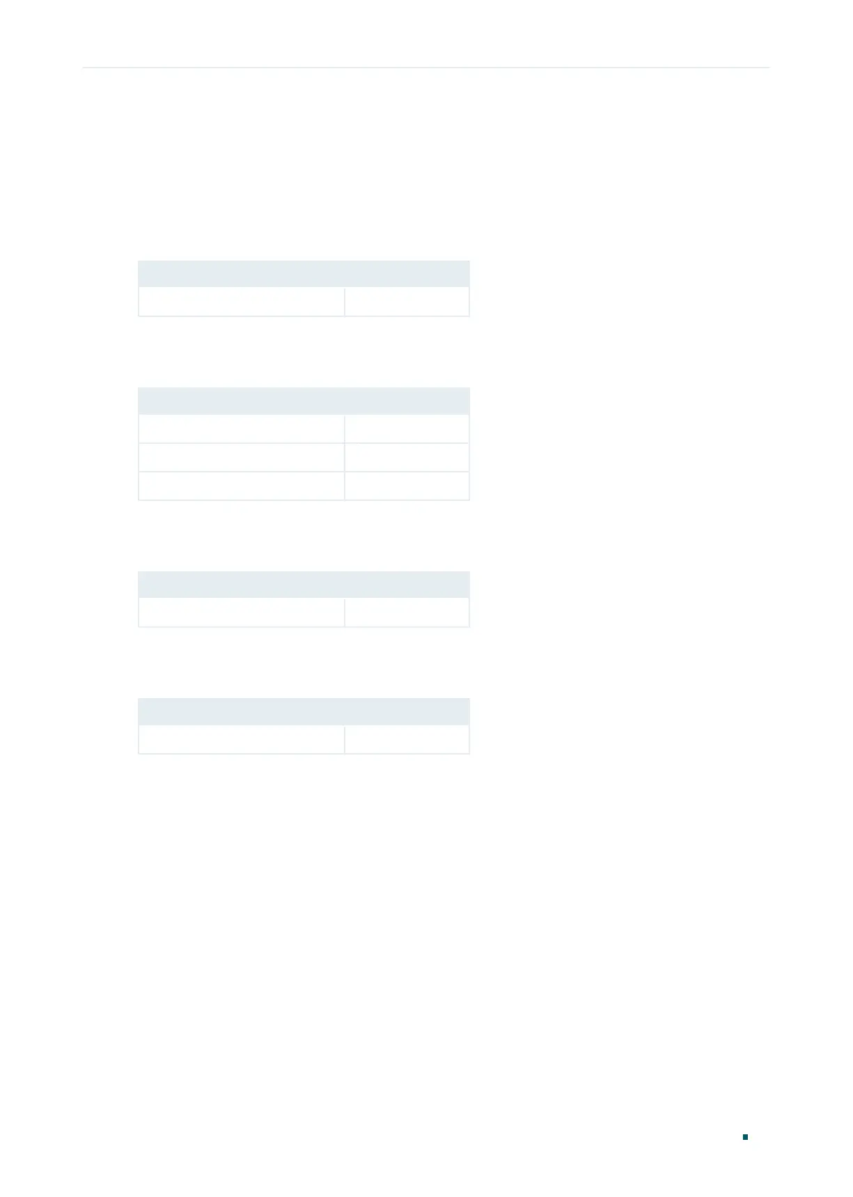 Default settings of VLAN are listed in the following tables.