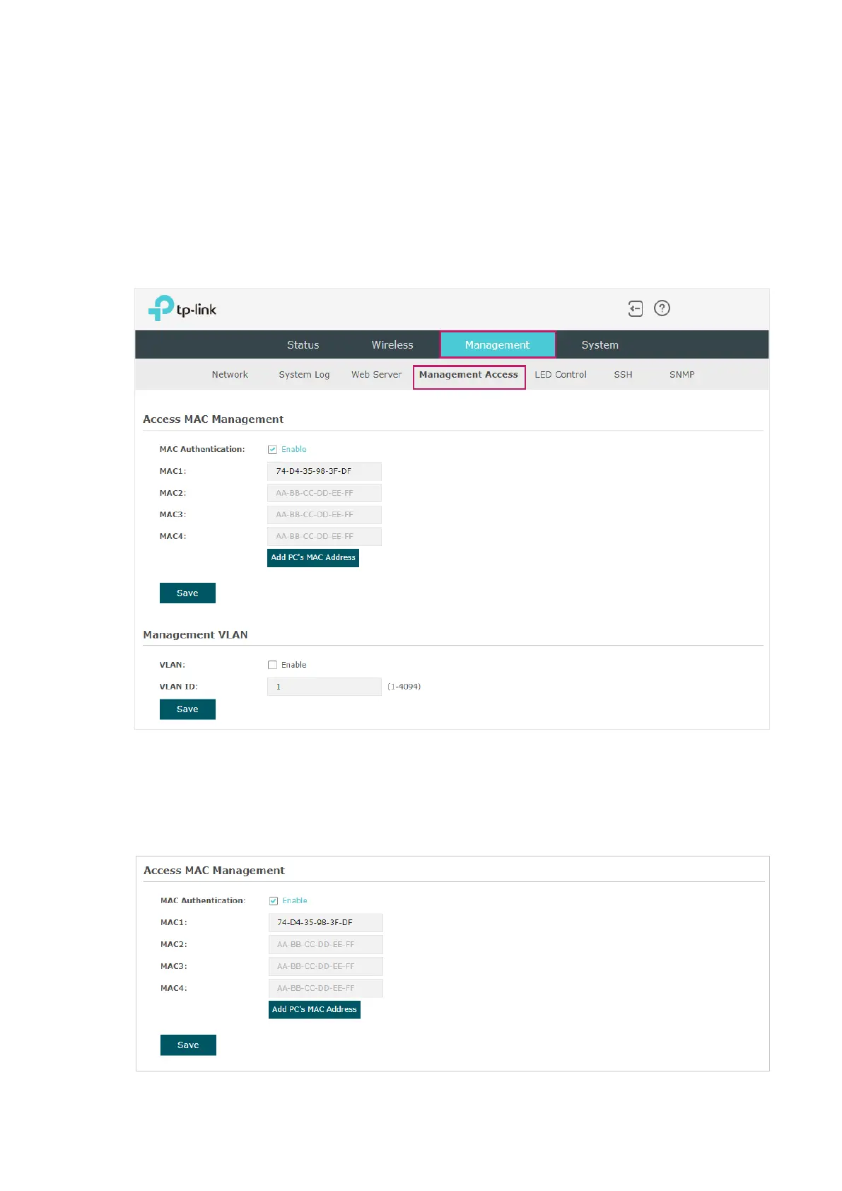 By default, all hosts in the LAN can log in to the management web page of the EAP with the