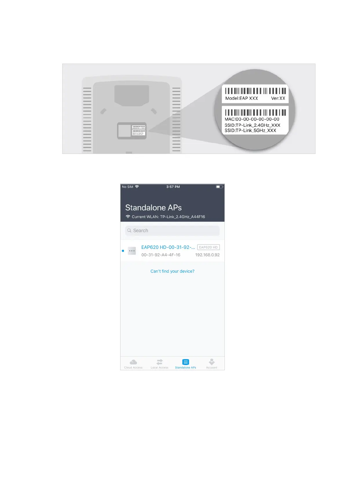2. Connect your mobile device to the WiFi of the EAP. The default SSID is printed at the