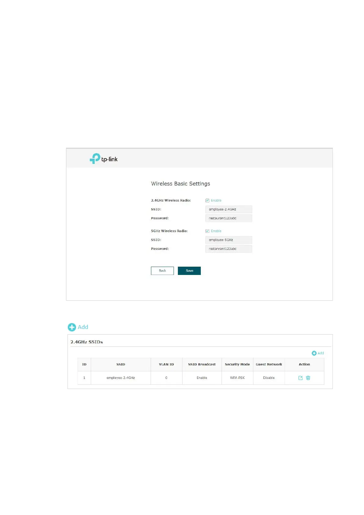“employee_5GHz”, specify the Password as “restaurant123abc“. Click Save.