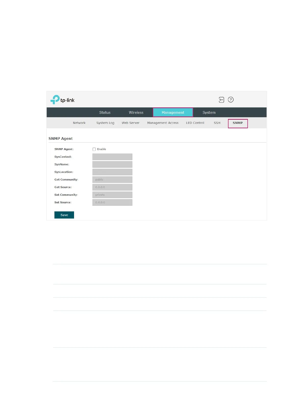 To configure the EAP as an SNMP agent, go to the Management > SNMP page.