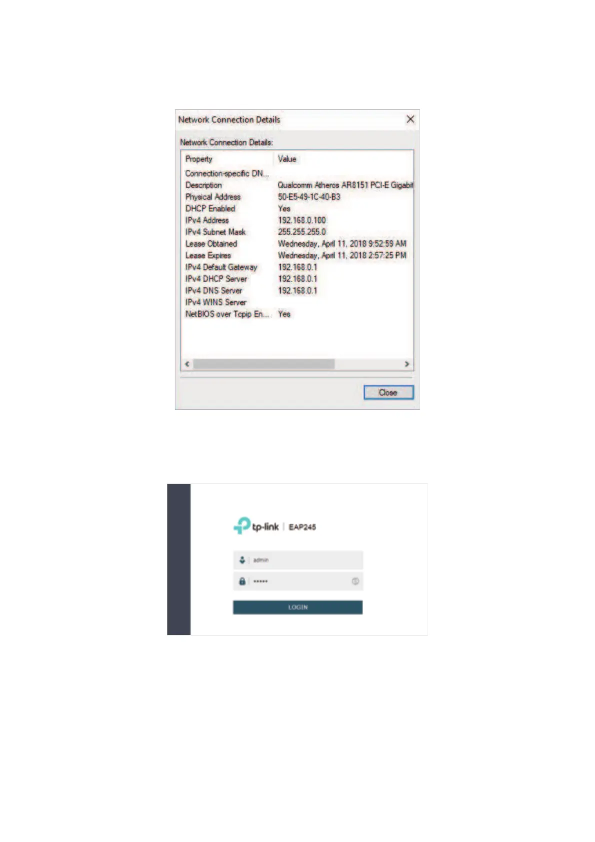 address bar to load the login page of the EAP. Use admin for both of the username and