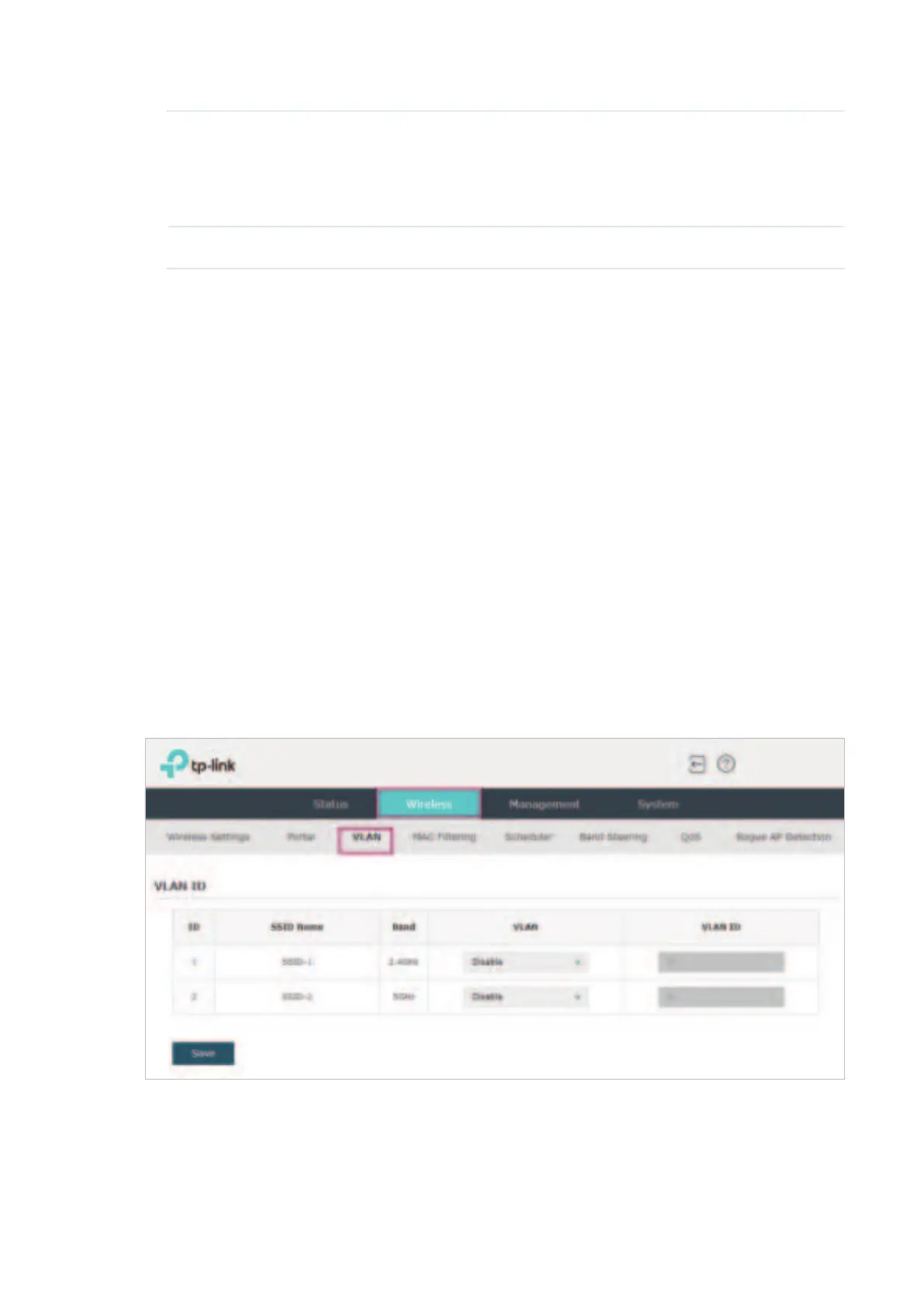 2. In the VLAN column and select Enable to enable the VLAN function on the SSID.