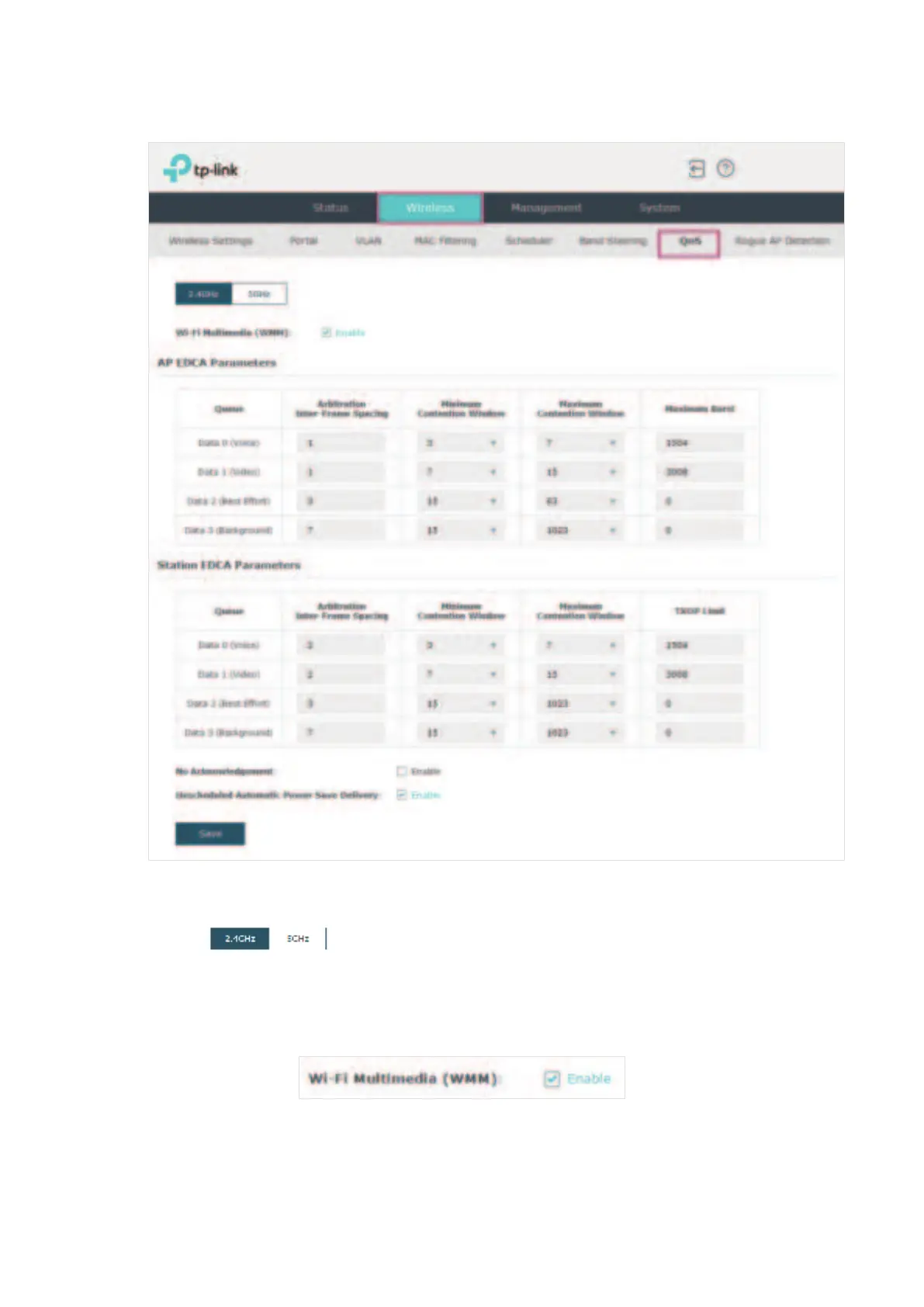 2. Check the box to enable Wi-Fi Multimedia (WMM). With WMM enabled, the EAP uses