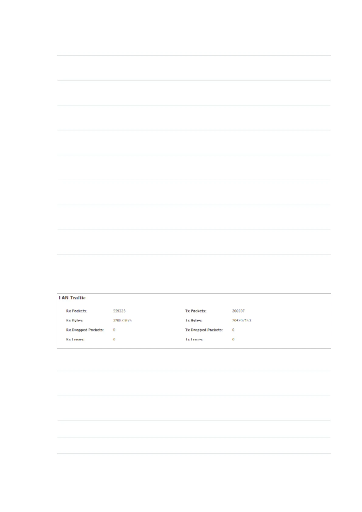 Rx Bytes Displays the total received traffic in the LAN since the EAP starts up.