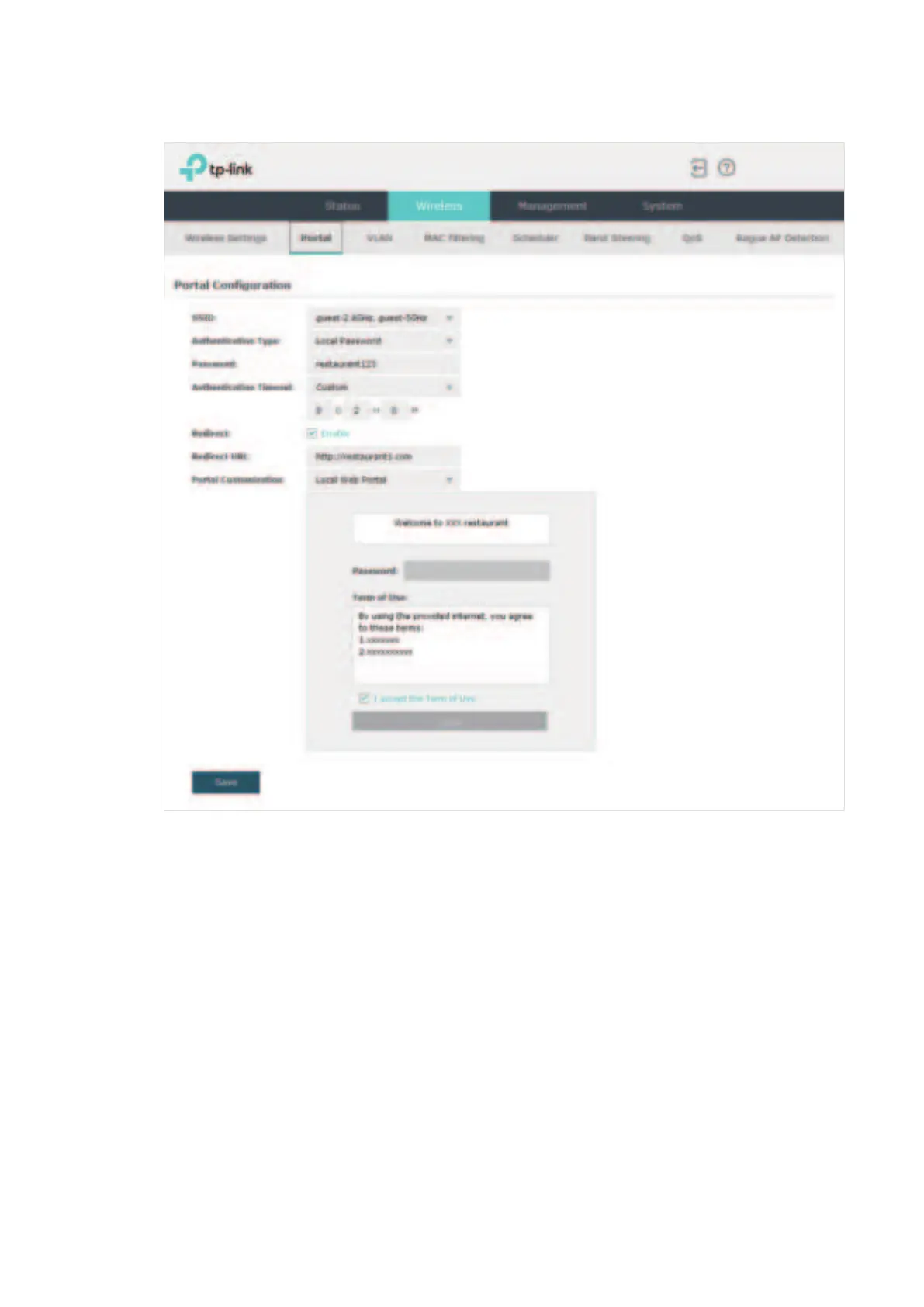 2. Configure the portal feature as the following figure shows.