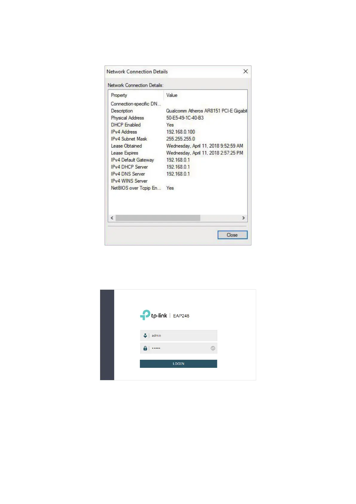 address bar to load the login page of the EAP. Use admin for both of the username and