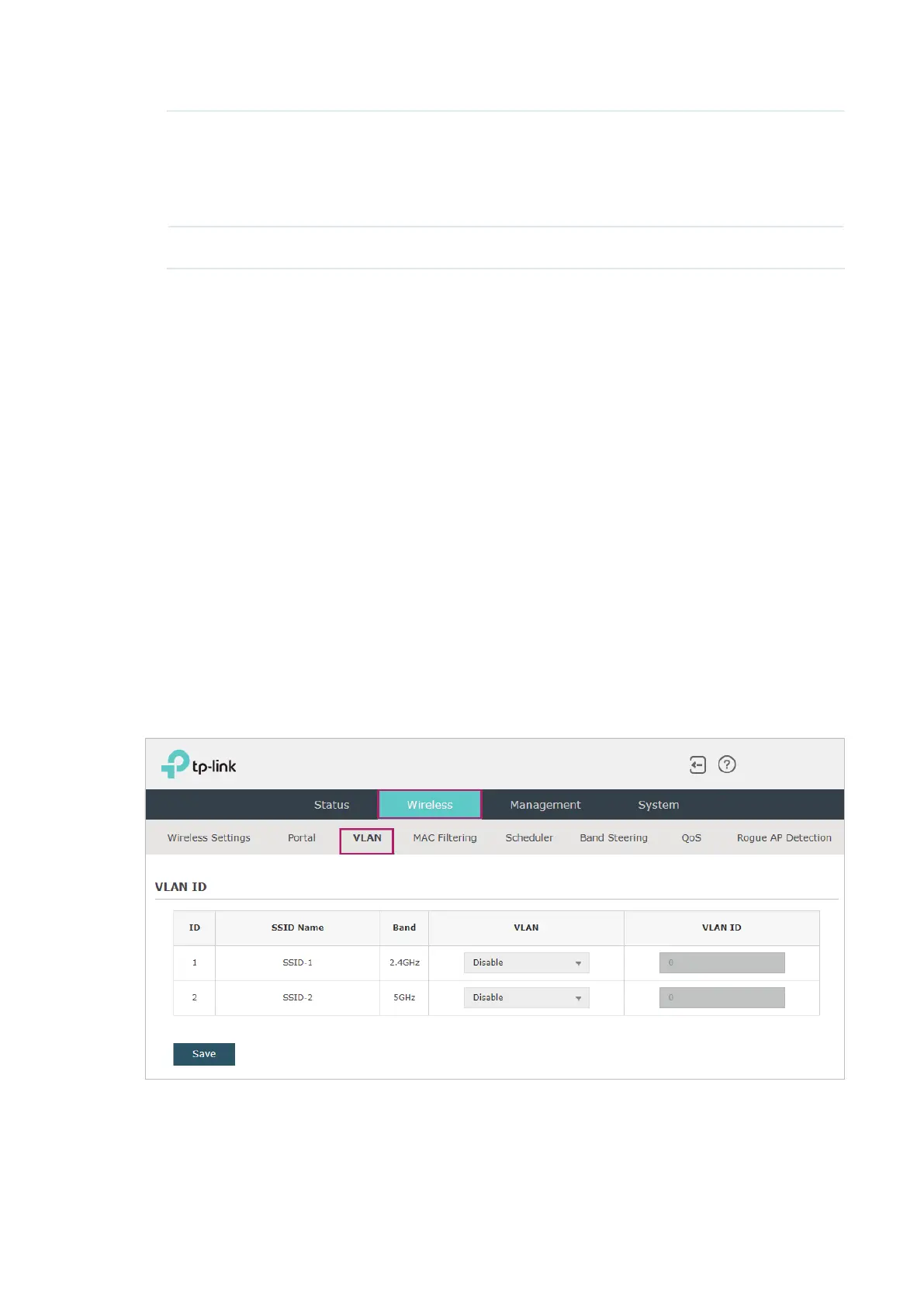 To configure VLAN for the wireless network, go to the Wireless > VLAN page.