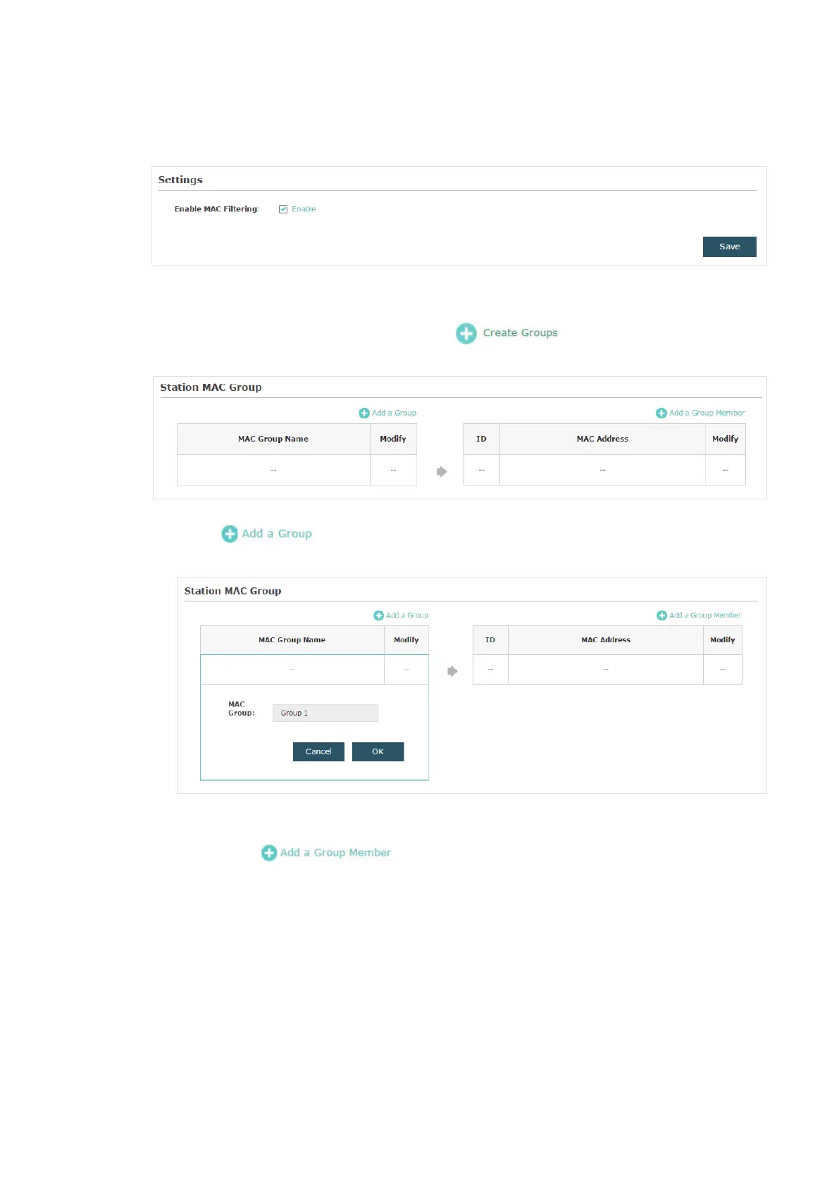 1. In the Settings section, check the box to enable MAC Filtering, and click Save.
