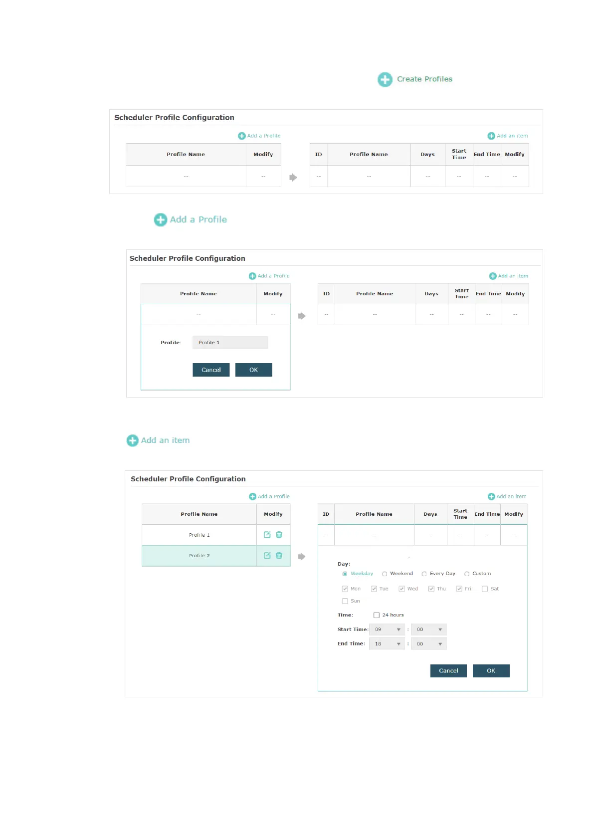You can add up to eight time range items for one profile. If there are several time range items in one