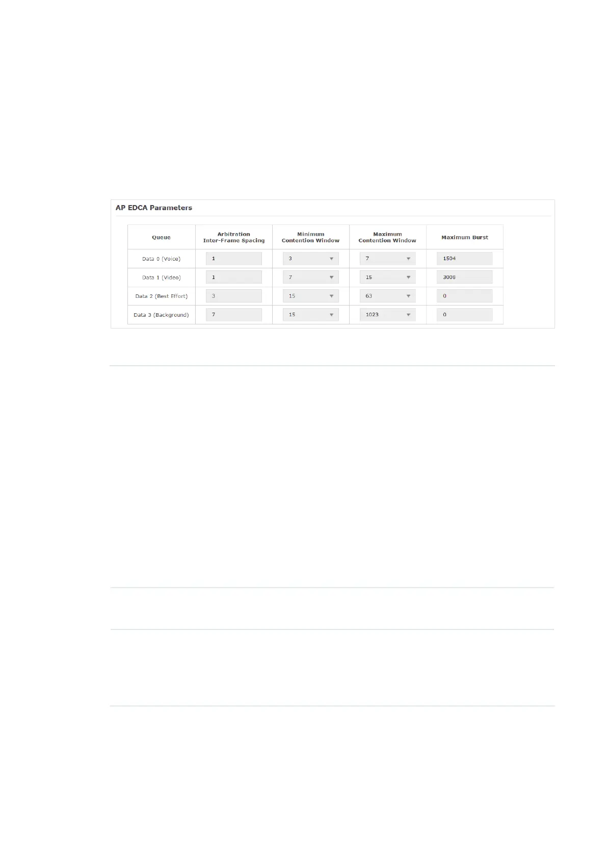 3. In the AP EDCA Parameters section, configure the AP EDCA ((Enhanced Distributed