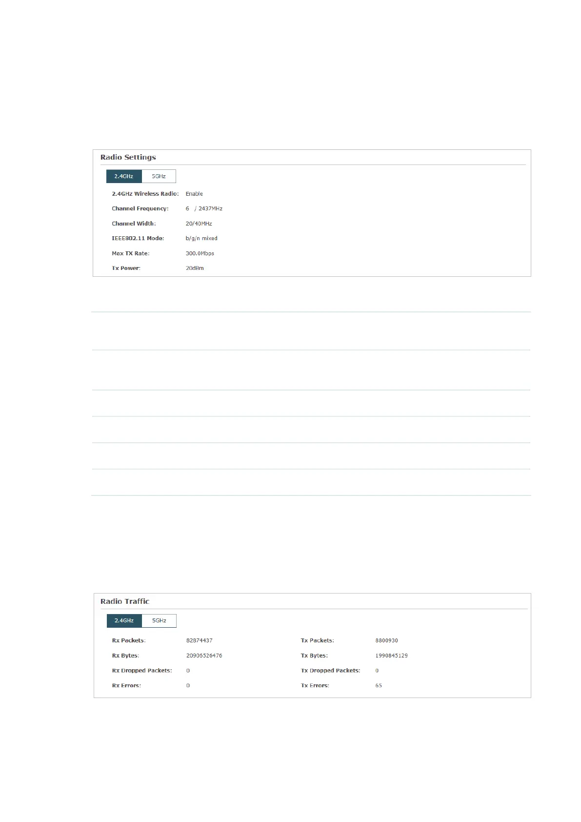 2.4GHz and 5GHz. You can click to select a band to view. The following figure posted in the