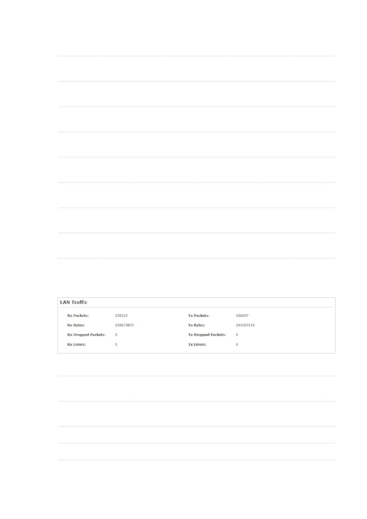 Tx Bytes Displays the total sent traffic in the LAN since the EAP starts up.