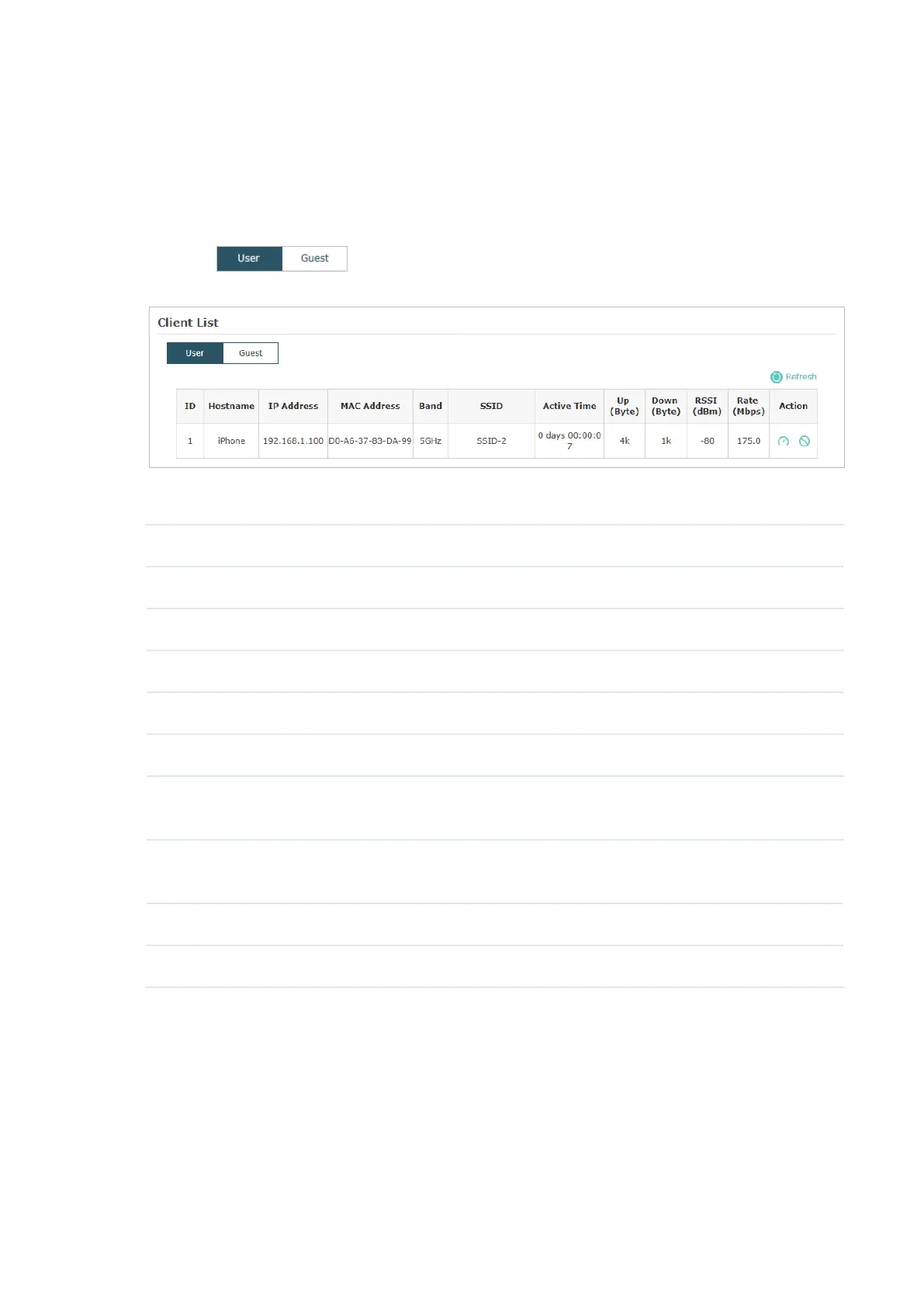 Rate (Mbps) Displays the wireless transmission rate of the user.