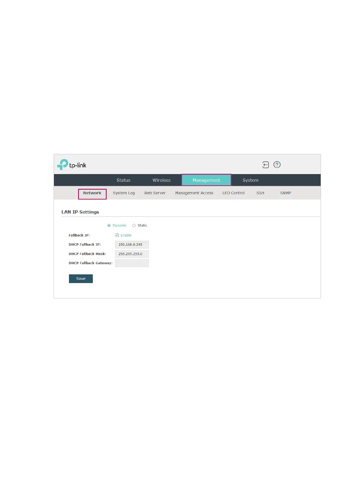 a static IP address manually specified by yourself. By default, the EAP gets a dynamic IP