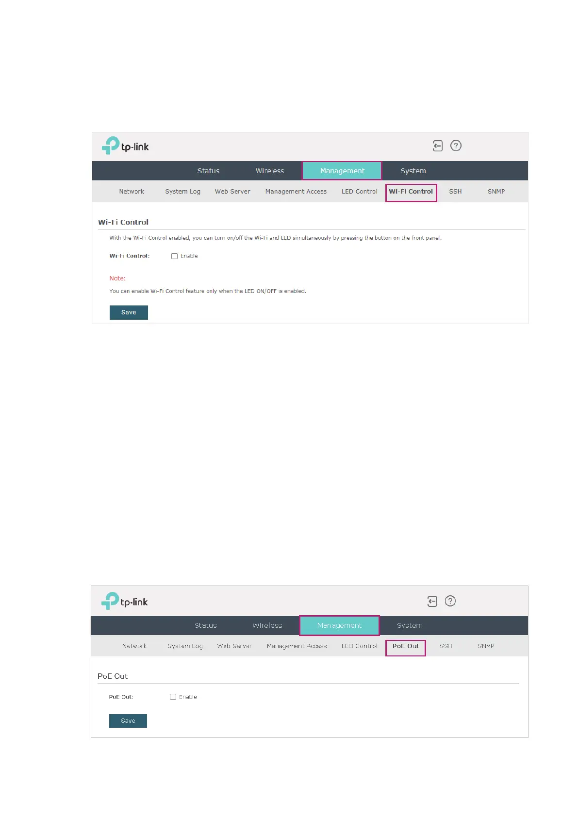 To configure Wi-Fi Control, go to the Management > Wi-Fi Control page.