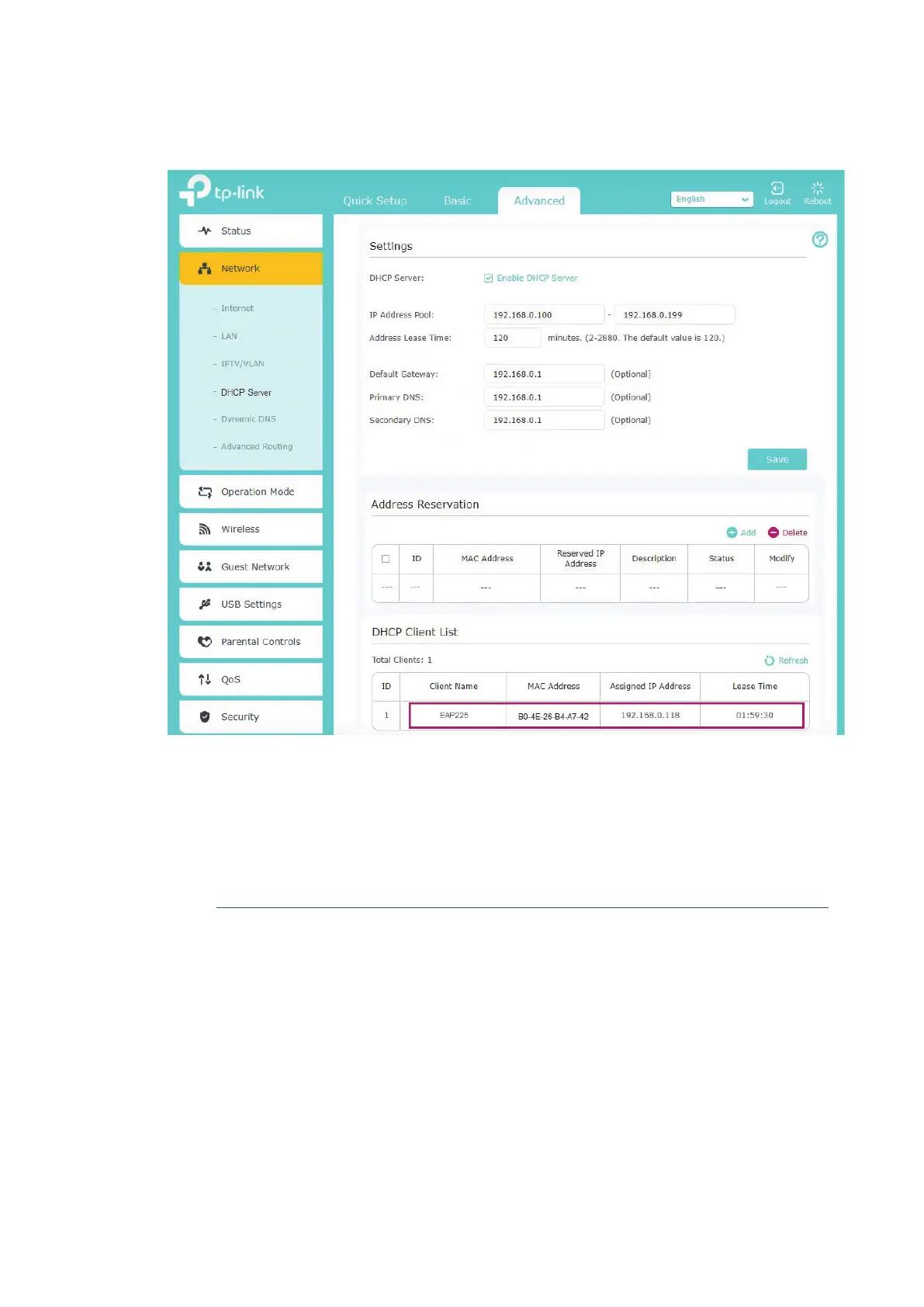 address, which is 192.168.0.254 by default.