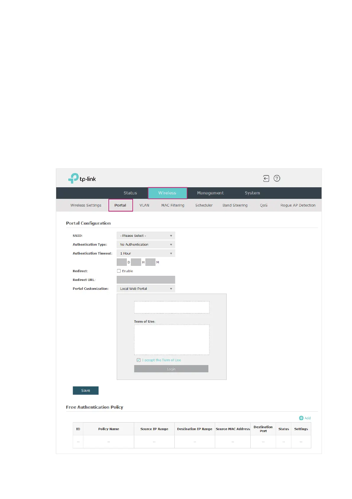 In this module, you can also configure Free Authentication Policy, which allows the specific