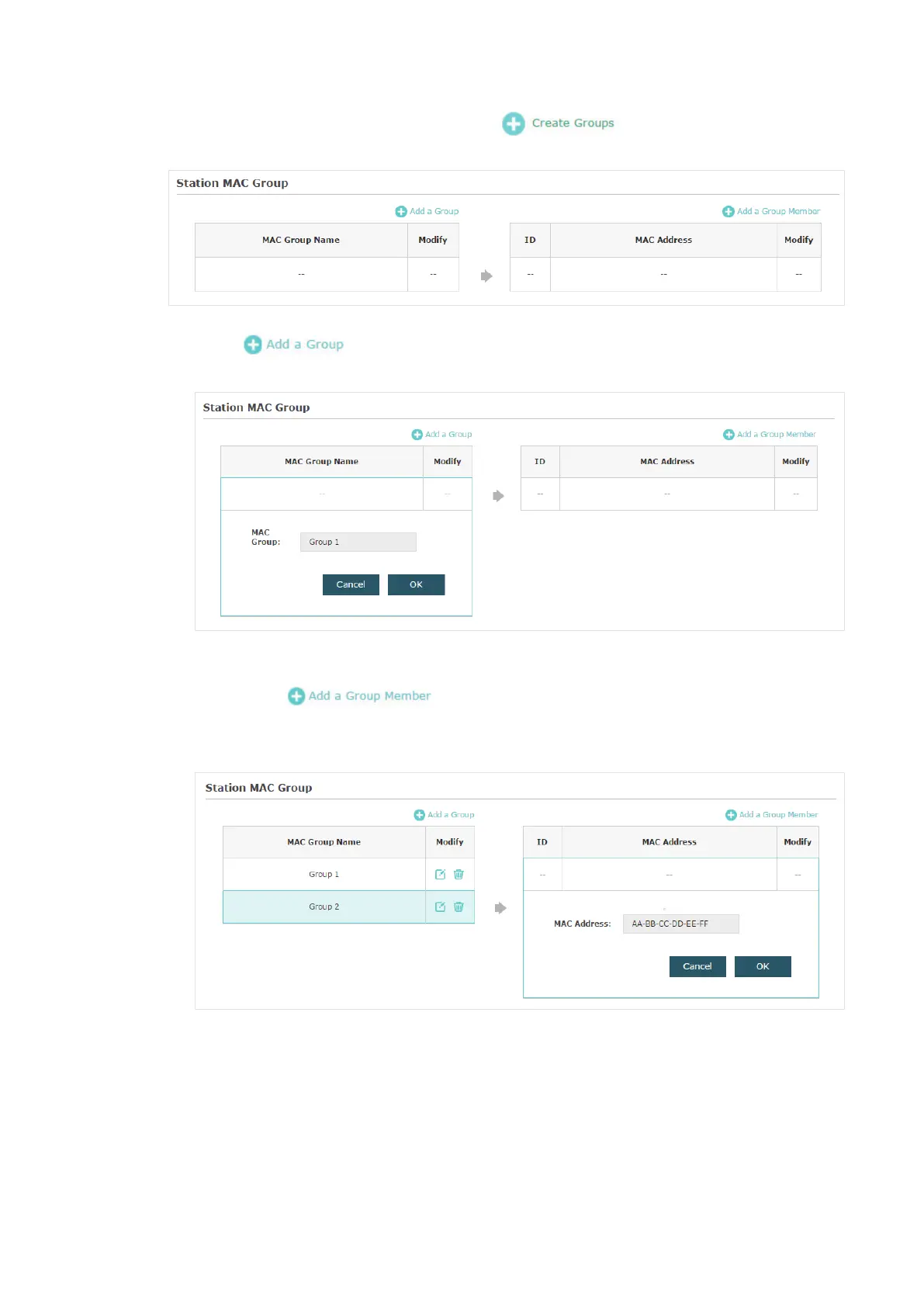 1 ) Click and specify a name for the MAC group to be created. Click OK.