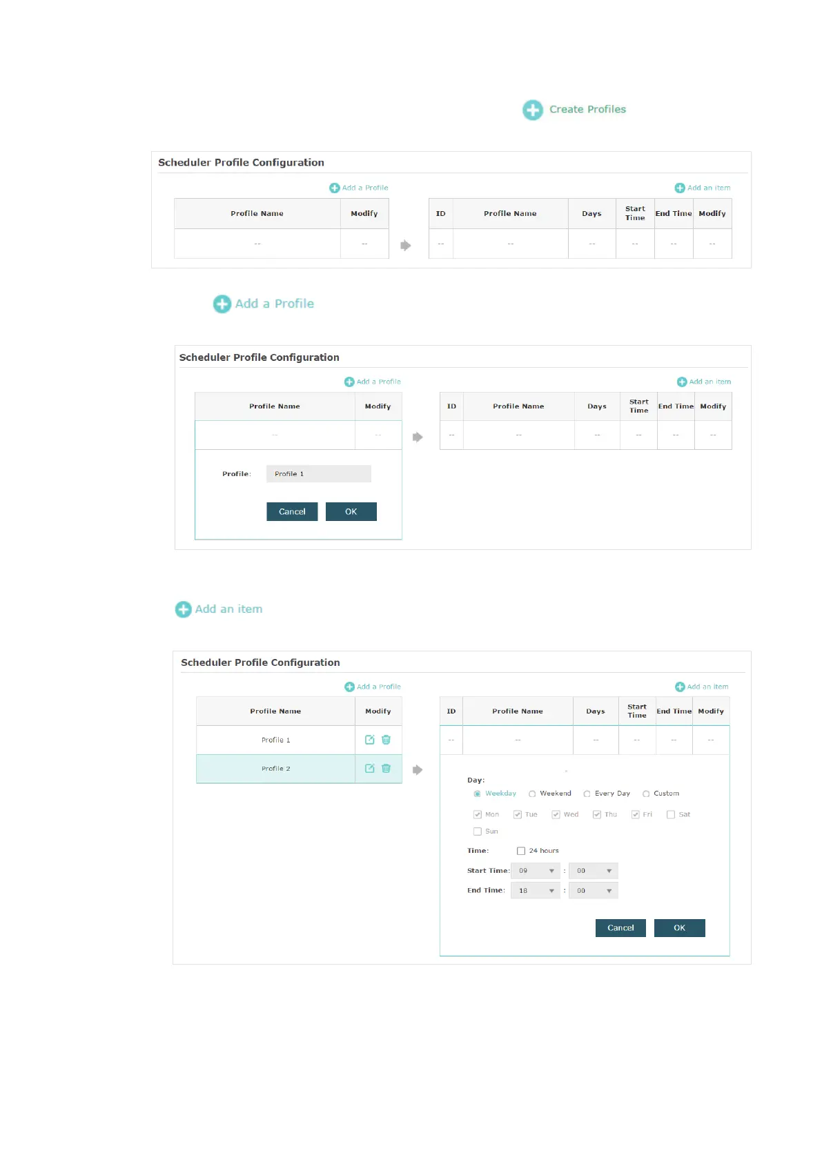 You can add up to eight time range items for one profile. If there are several time range items in one