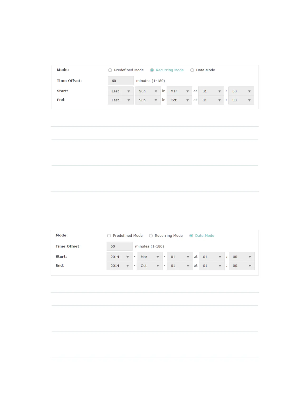 If you select Recurring Mode, manually specify a cycle time range for the daylight saving