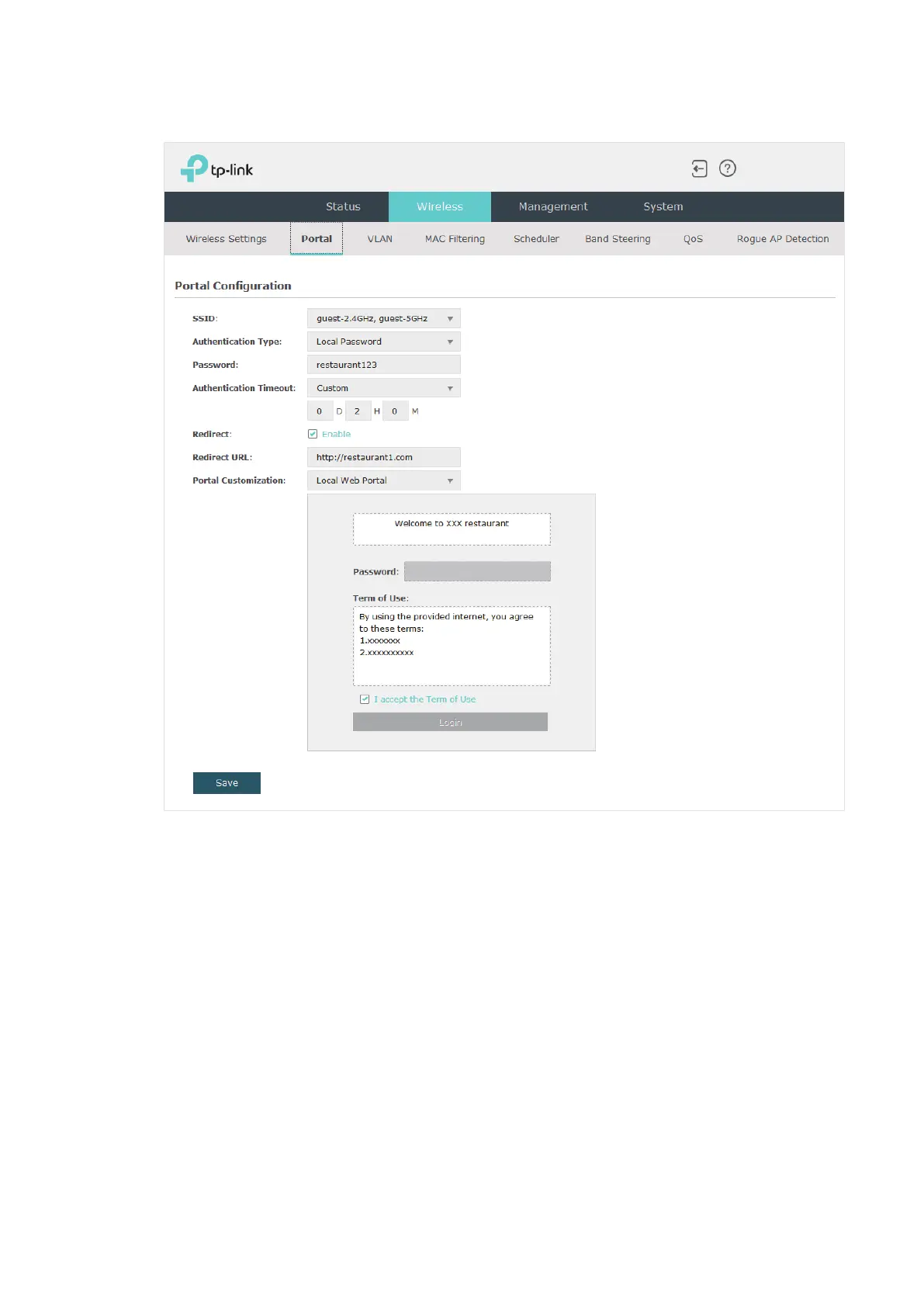 1 ) Select the SSIDs for the guests on which the portal will take eect.