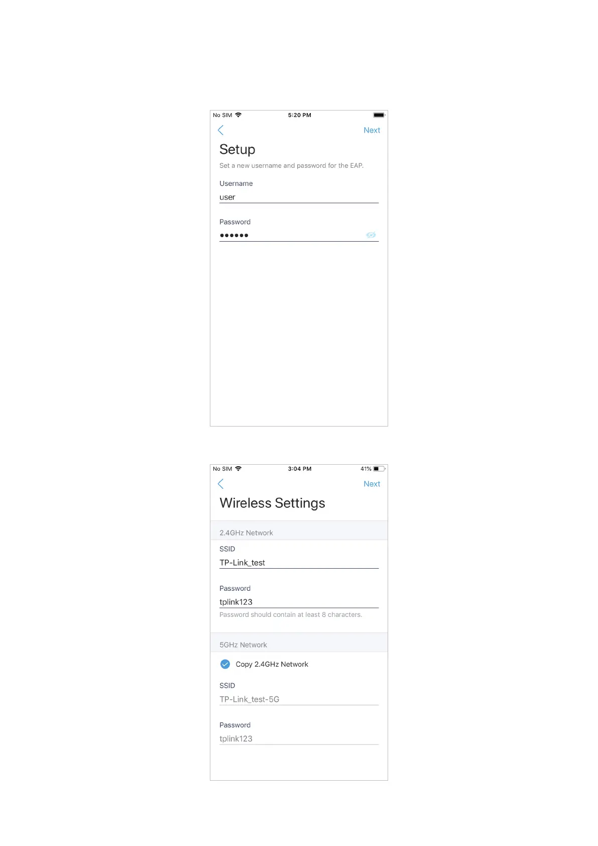 4. Tap on the EAP appearing on the page. Set a new username and password for your
