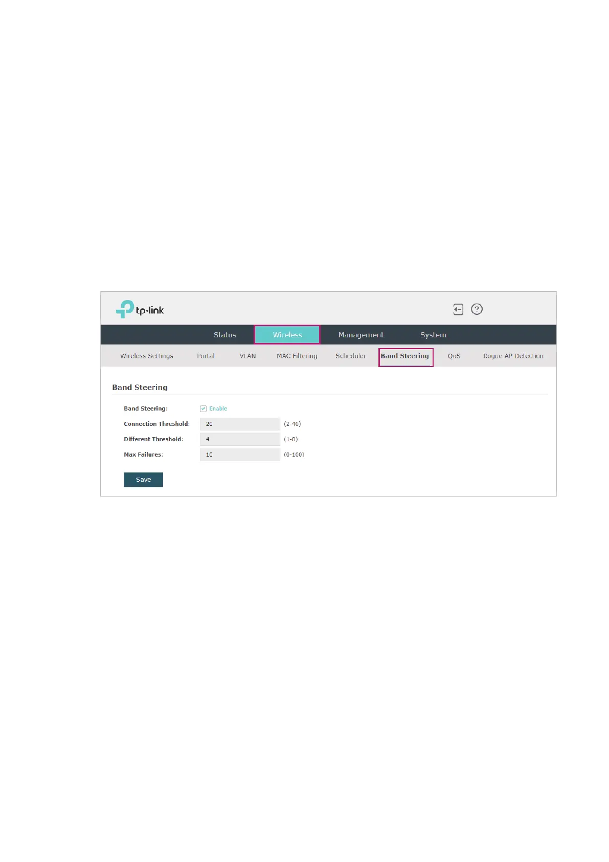Follow the steps below to configure Band Steering on this page: