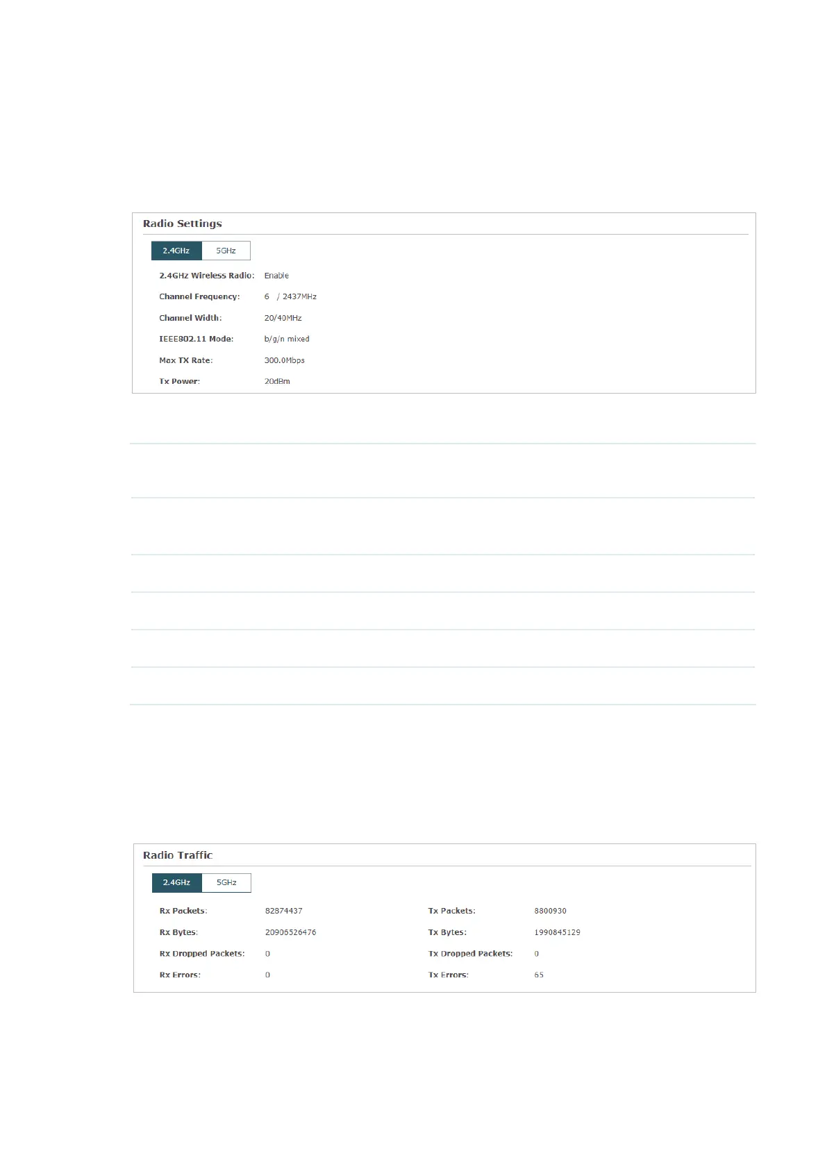 2.4GHz and 5GHz. You can click to select a band to view. The following figure posted in the