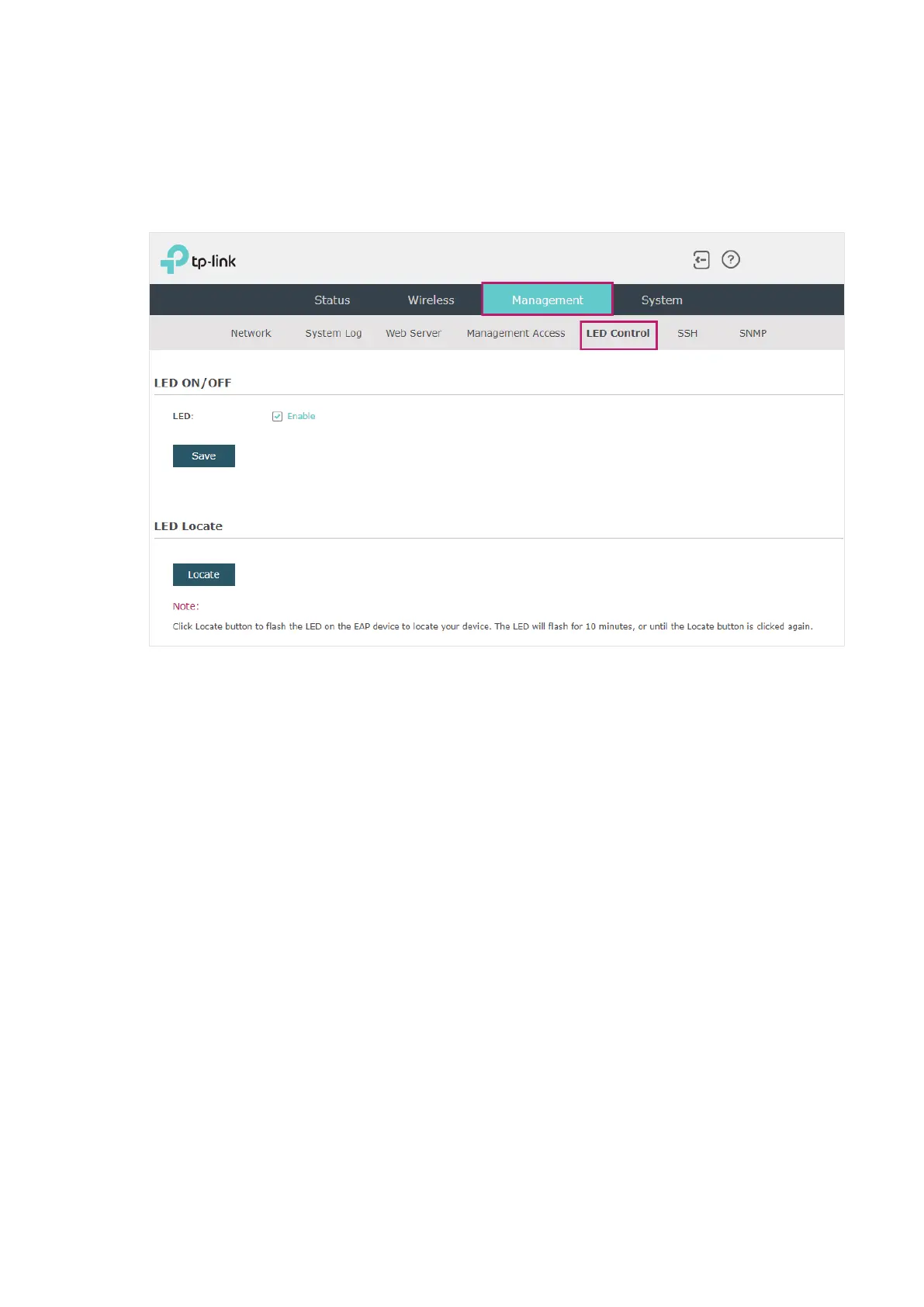 You can turn on or off the LED light of the EAP and flash the LED to locate your device.