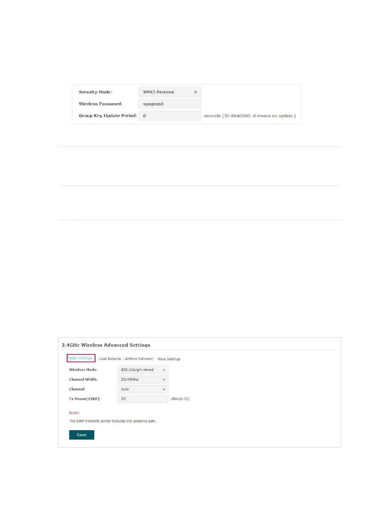Radio settings directly control the behavior of the radio in the EAP and its interaction with
