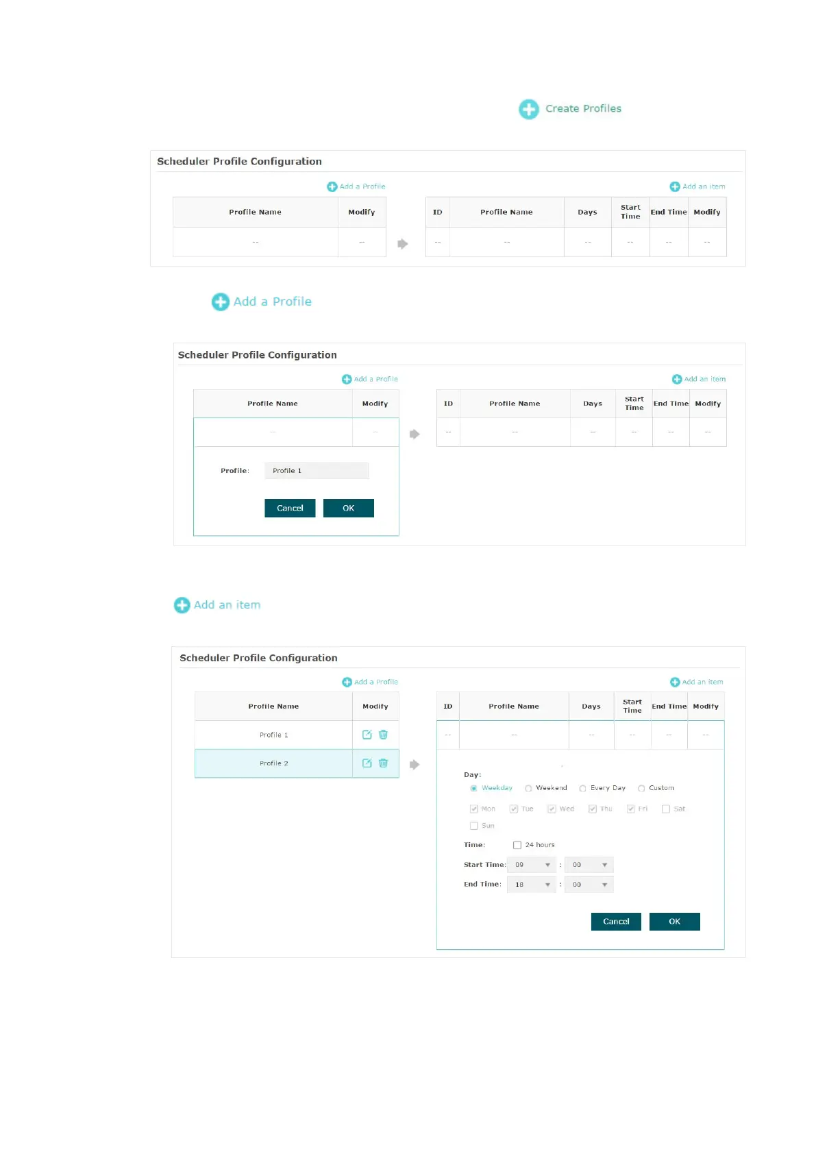 You can add up to eight time range items for one profile. If there are several time range items in one