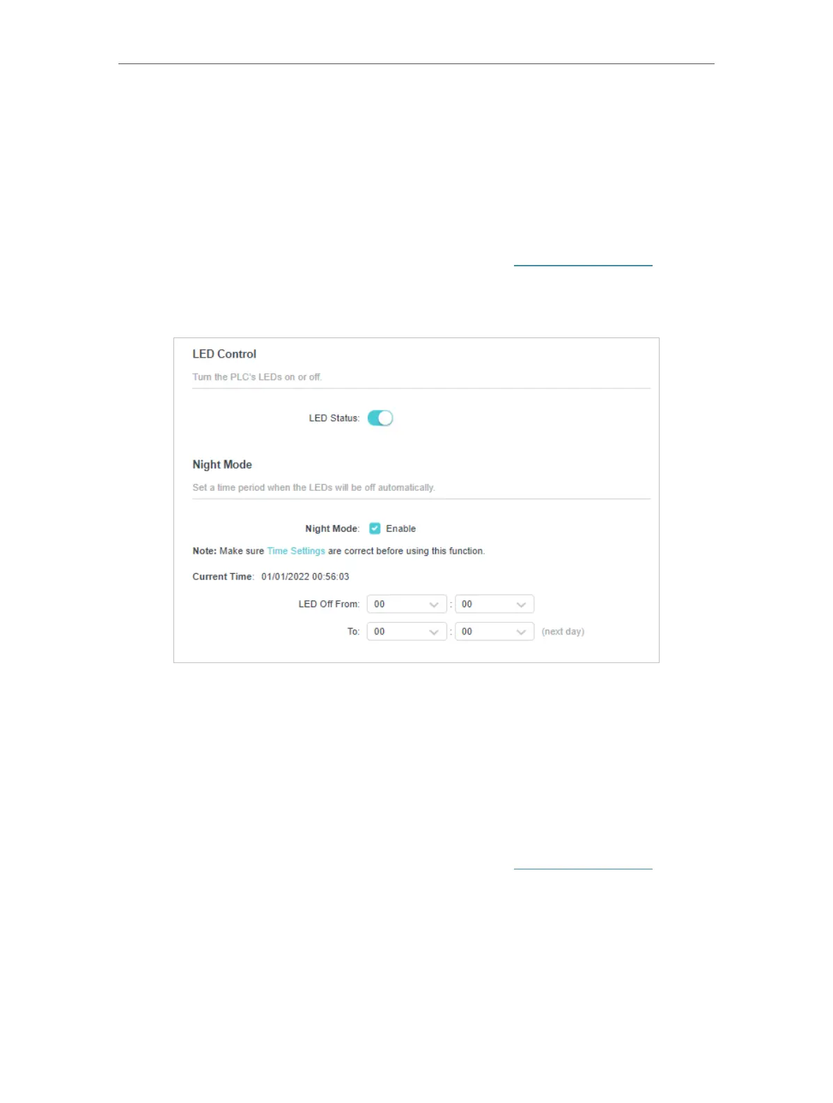3. Enable Night Mode. Specify the LED off time, and the LED will be off during
