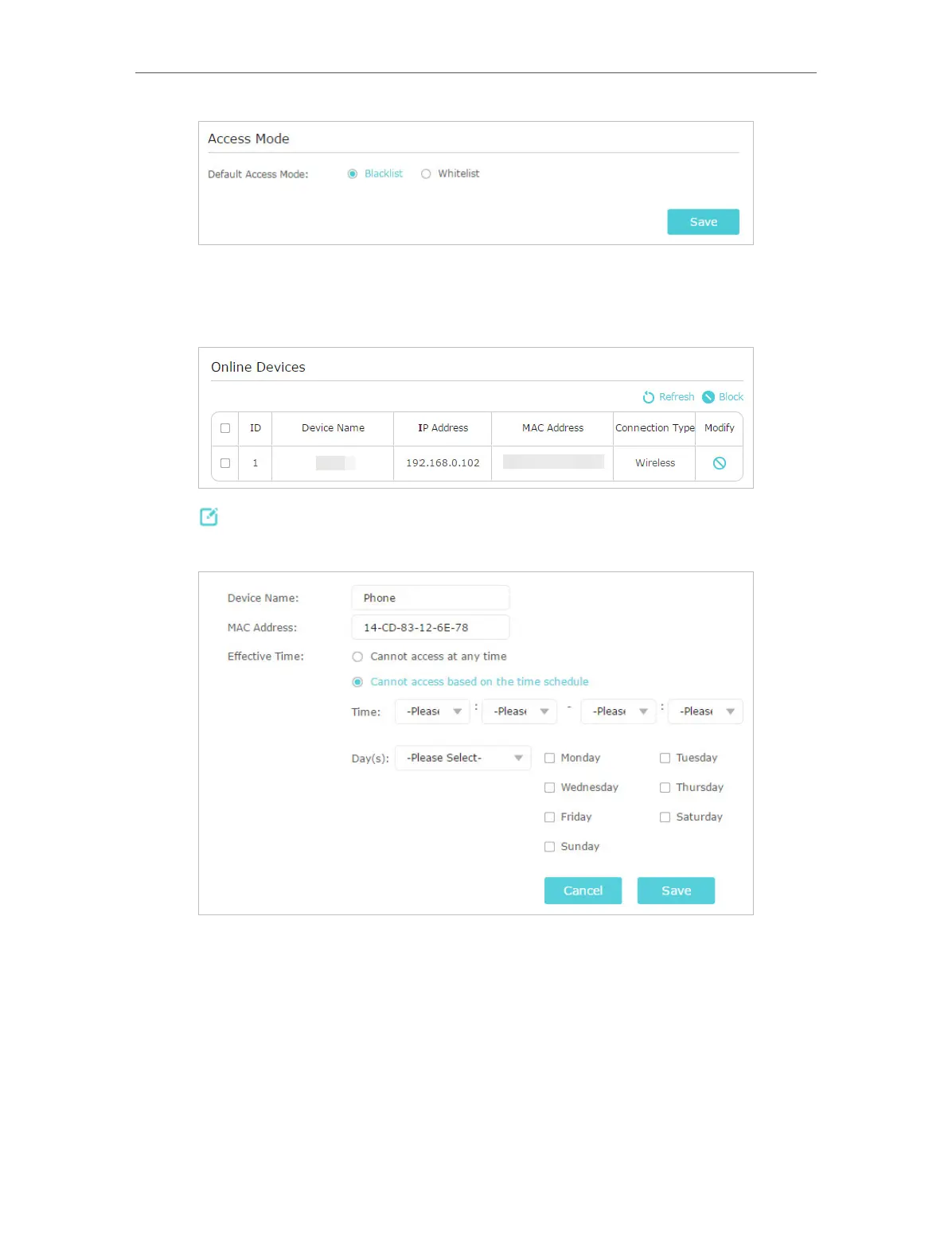 4. Click in the Devices in Blacklist table to set the Effective Time for a certain entry