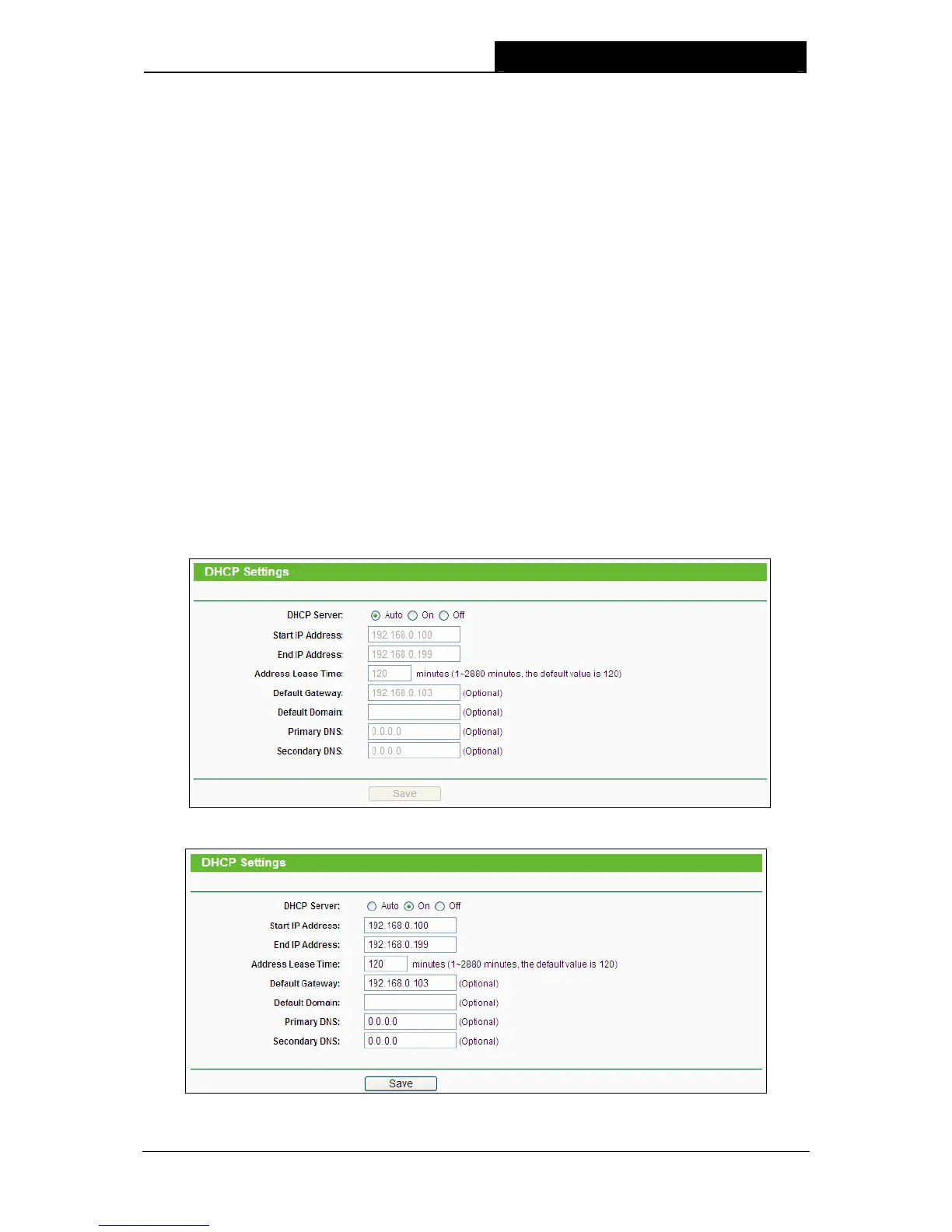 Figure 4-5 DHCP Settings – Auto