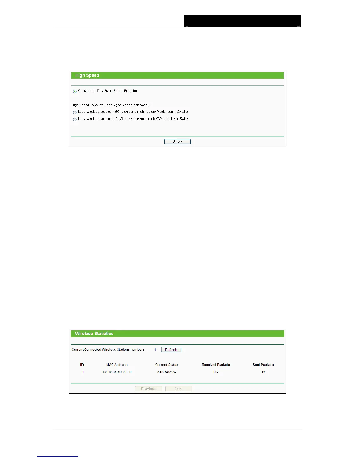 Selecting Wireless > High Speed allows you to configure the wireless mode for your device