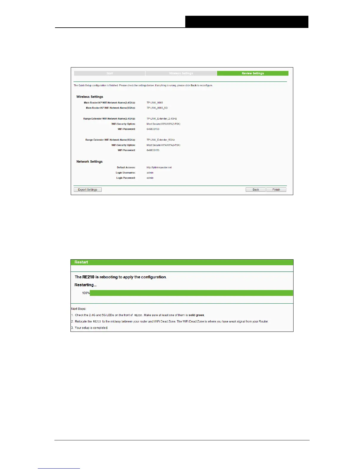 click Finish to complete the Quick Setup. If there is anything wrong, click Back to return to