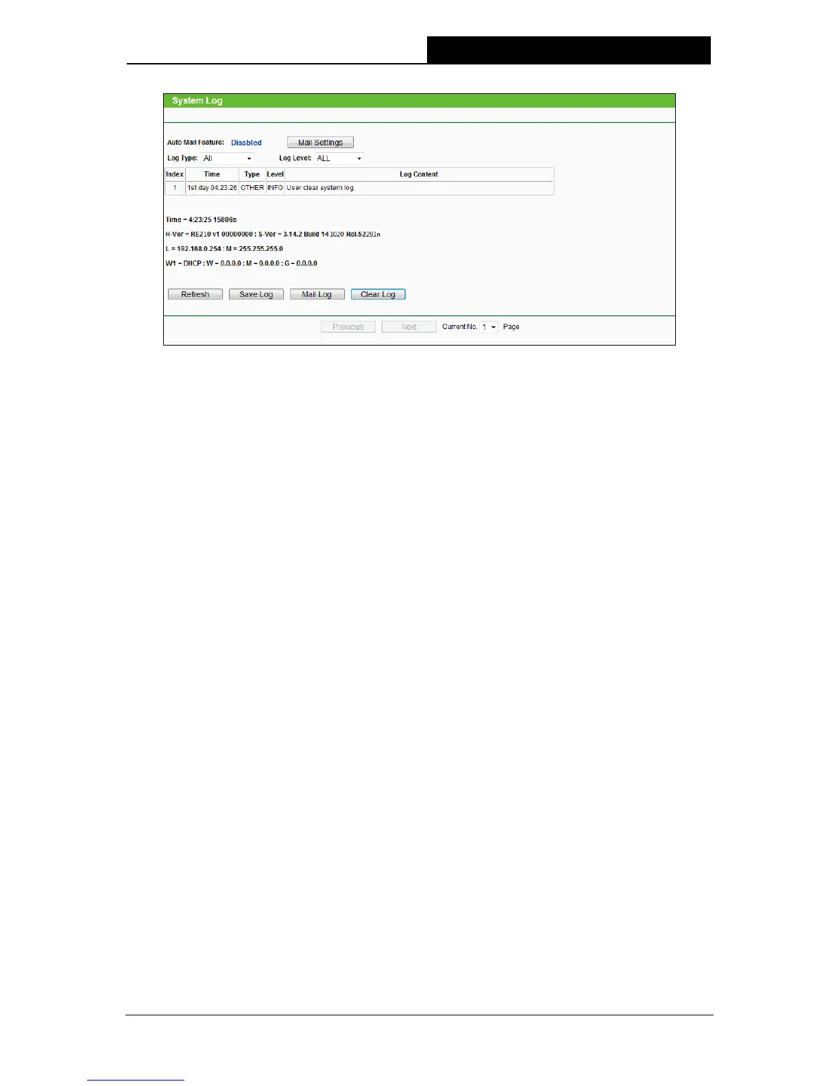 Click the Clear Log button to delete all the logs from the system permanently, not just from the